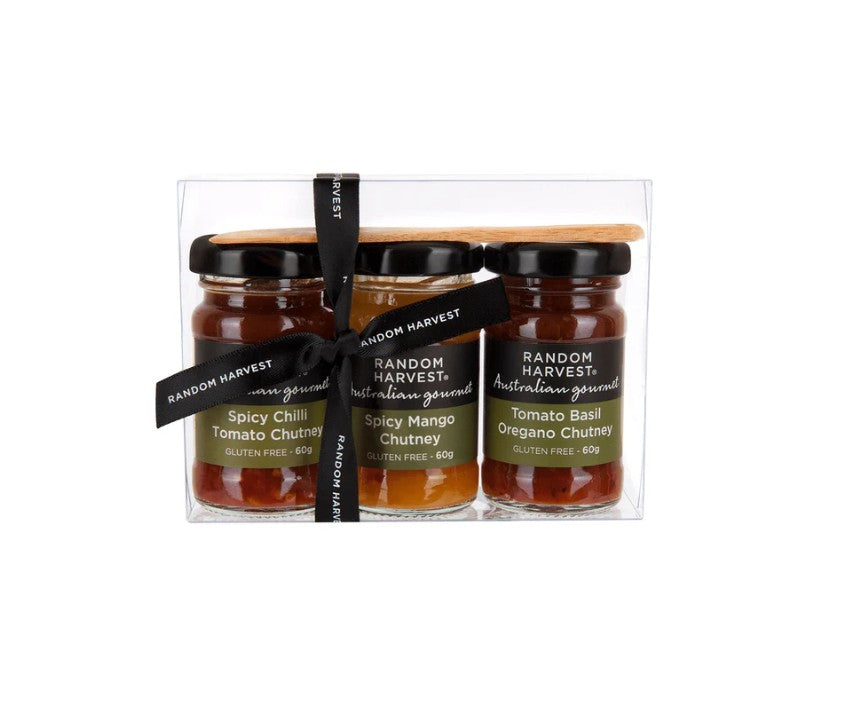Gourmet Chutney Sampler Gift Pack A delightful gourmet chutney sampler pack featuring three mini 60g jars, beautifully presented with a... Read more