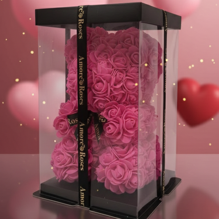 Rose bear - Hot pink black bow