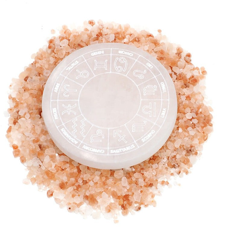 Selenite is admired for its calming, cleansing energy, making this plate perfect for crystal charging, spiritual setups, altar décor, or simply as a striking display piece for astrology lovers.