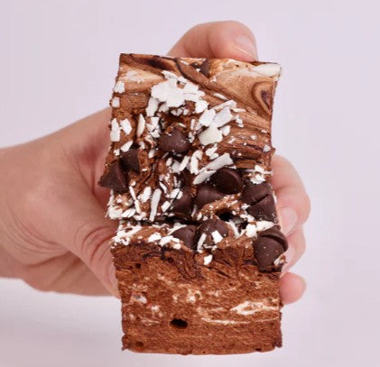 Calling all chocoholics! Our Triple Choc Fudge Marshmallows are chocolate overload in the best way possible. A rich chocolate marshmallow base meets a gooey chocolate fudge swirl, then gets showered with crunchy white chocolate flakes and dark chocolate chips.